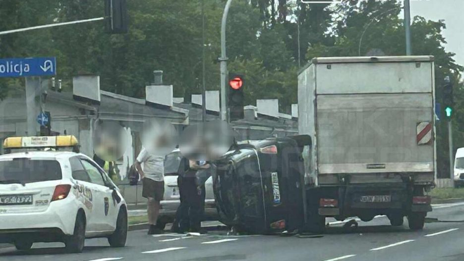 Zderzenie trzech pojazdów na Mokotowie. Jedno z aut dachowało