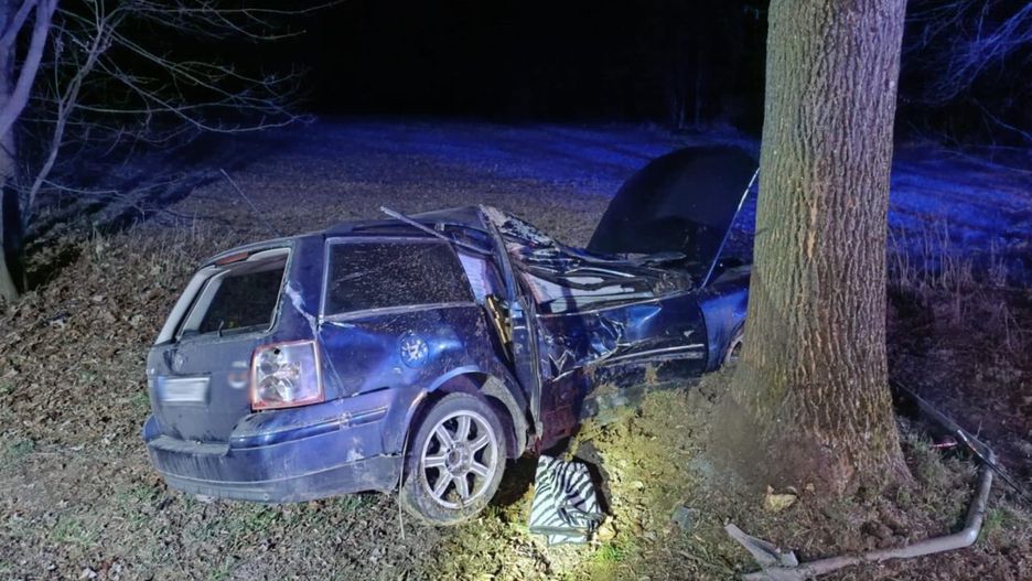 W rejonie wypadku ratownicy zastali rozbitego volkswagena z dwoma poszkodowanymi osobami. Ze wstępnych ustaleń wynika, iż kierujący volkswagenem młody mężczyzna poruszał się w kierunku Wysokiego. Na łuku jezdni podjął manewr wyprzedzania jadącego przed nim audi. Stracił jednak panowanie nad pojazdem, rozpędzone auto wypadło z drogi, a następnie bokiem uderzyło w drzewo.
