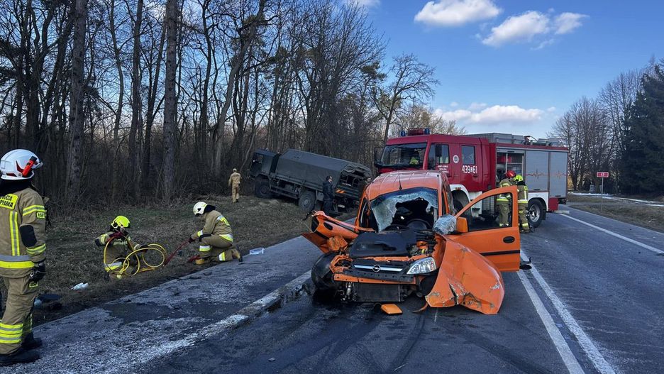 Do wypadku doszło dzisiaj około godziny 13.15 na drodze krajowej nr 17 pomiędzy Krasnymstawem a Zamościem, w miejscowości Wał w powiecie krasnostawskim. W zdarzeniu brały udział dwa pojazdy – samochód osobowy oraz wojskowa ciężarówka. Na miejscu interweniowały zastępy straży pożarnej, zespół ratownictwa medycznego oraz policja.
